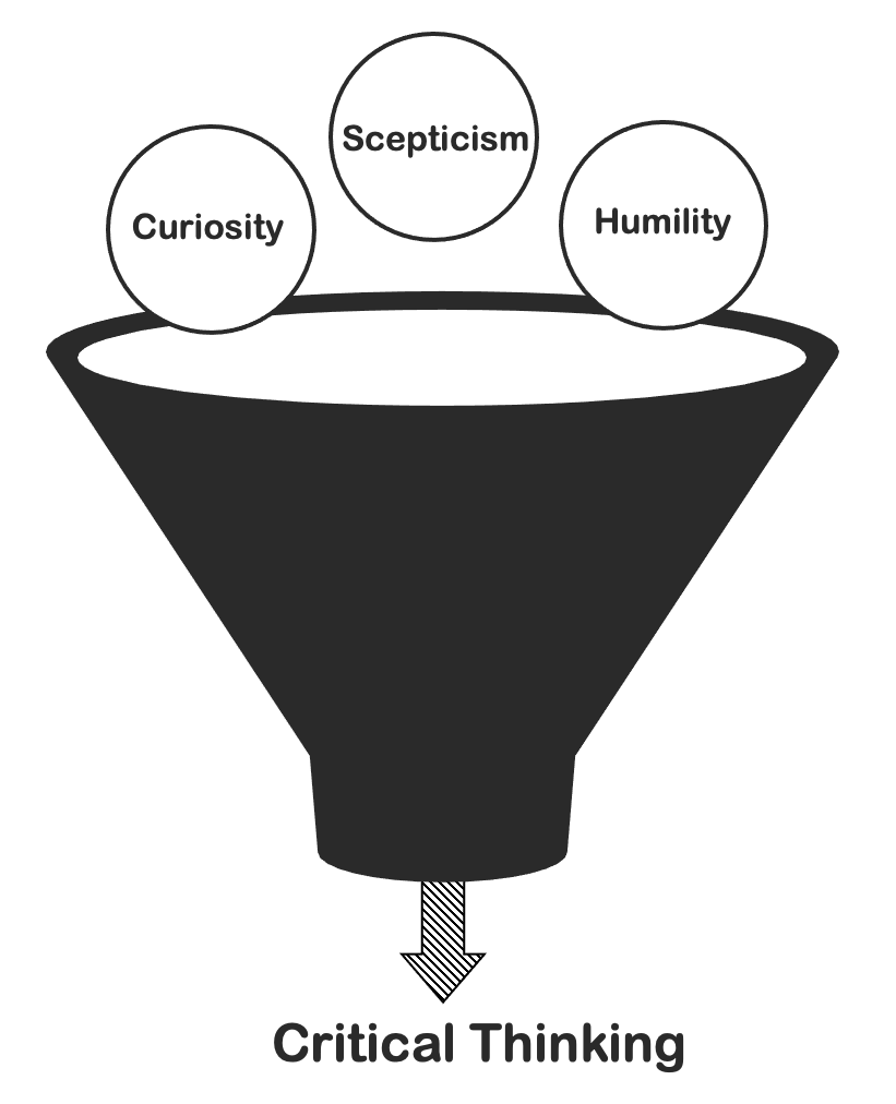 There are three core elements needed for a critical thinking mind-set: curiosity, scepticism and humility.