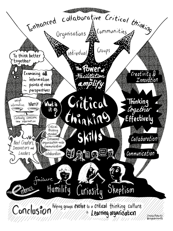 Organizations that want to move in this direction will need to make changes on several fronts to establish the needed processes and open up the benefits of enhanced collaborative critical thinking. The power of facilitation can help with this shift in corporate culture. But maybe, more importantly, critical thinking can amplify the power of facilitation by helping individuals, groups, organizations and communities examine all information, all points of view, and all perspectives, in a way that enhances their ability to think better together.